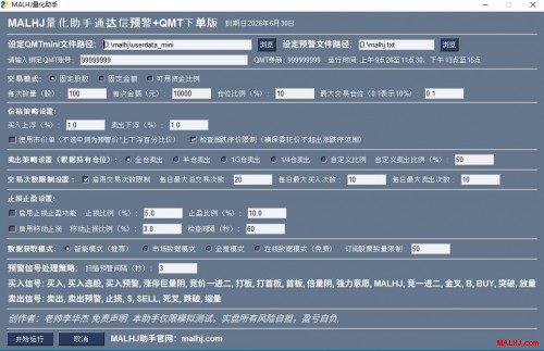 MALHJ量化助手让自动交易更简单,支持同花顺动态和通达信预警